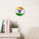 Drapeau d'horloge murale de l'Inde que vous pouvez customiser avec n'importe quel texte de votre choix. Si vous avez besoin d'aide pour vous customiser, contactez-nous via le lien de cette page. Horloge murale du drapeau indien.