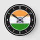 India Flag Elegant Round Clock avec le drapeau de l'Inde positionné au milieu et de beaux nombres d'horloge blancs sur le bord de l'horloge. Un arrière - plan noir élégant aux éléments blancs ovale finalise le design en mettant l'accent sur l'élégance. Une belle combinaison de noir et blanc avec l'intégration habile des couleurs du drapeau national font de cette horloge le cadeau parfait et la grande pièce de spectacle sur le mur. © 2022 PaysDuMonde