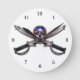 Horloge Ronde Drapeau porto-ricain - Crâne et épées croisées