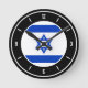 Israel Flag Elegant Round Clock with the Israel flag posied in the middle and lovely white clock numbers on the clock edge. Delightful black background with the white oval element finalize the design putting emphasis on the elegance. Beautiful combination of black and white with the skillful integration of the national flag colors make this clock the perfect gift and the great show piece on the wall. © 2022 CountriesOfTheWorld