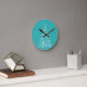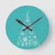 Horloge Ronde élégant arbre de Noël blanc et turquoise