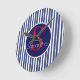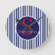 Horloge Ronde Élégant bleu marine rouge rayé monogramme initial