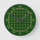Horloge Ronde Élégant Damas vert et or