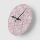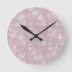 Elegant wall clocks for your home or office that objets a pattern of pink sunbursts with white numbers. These clocks would look lovely hanging in your family room, menace, patio.