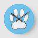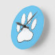 Horloge Ronde Empreinte de patte Blanc Sur Sky Blue