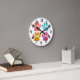 Horloge Ronde Empreinte de Patte de Chien Couleurs Fraîches