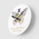 Bring a touch of timeless elegance and celestial beauty to your home with this exquisite wall clock. The design features a majestic butterfly with soft pink watercolor wings, delicately adorned with golden crescent moons and shimmering stars. At its center, a hand-drawn botanical bouquet showcases the Violet and Primrose, the official birth flowers for February.