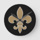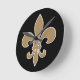 Horloge Ronde Fleur de Lis Gold avec contour blanc et noir