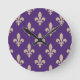 Horloge Ronde Fleur de Lis Motif, Royal French Creative on Purpl