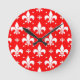 Horloge Ronde Fleur de lis rouge Motif
