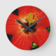 Horloge Ronde Fleur d'Hibiscus rouge-orange