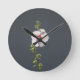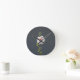 Horloge Ronde Fleur rose feuilles vert pâle sur gris foncé