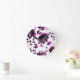 Horloge Ronde Fleurs d'Aquarelle Florale Violet Élégant Chic