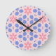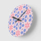 Horloge Ronde Fleurs roses vives et formes bleues sur mur floral