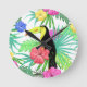 Horloge Ronde Fleurs tropicales de jardin avec perroquet