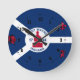 Horloge avec drapeau de la ville de Fort Wayne, Indiana; drapeau bleu et blanc et avec blockhouse rouge au centre et trois illustrations dans le champ bleu - illustration de la tête des Amérindiens, fleur de lys français et lion britannique