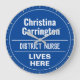Amusant style commémoratif Plaque murale cadeau sous forme d'horloge murale pour une infirmière de district. Plaque bleue et blanche. Modifiez la conception pour modifier le libellé en fonction du destinataire du cadeau.