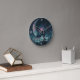 Horloge Ronde Galaxy Wolf Silhouette with Mystical Nebula Moon -