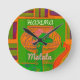 Horloge Ronde Girafe Rasta Rouge Doré Vert Africain Couleurs
