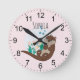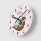 Horloge Ronde Girls Cute Pink Otter Flowers and Name Kids