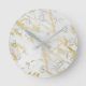 Horloge Ronde Glam Marble Moderne Personnalisé Blanc & Or