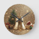 Horloge Ronde Golden Christmas Bell Wall Clock – Festive Holiday