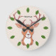 Horloge Ronde Green Laurel Feuilles & mignonette Reindeer Face