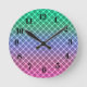 Horloge Ronde Grille dégradée à damiers motif tartan plaid rose