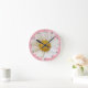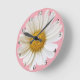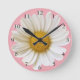 Horloge Ronde Grosse marguerite blanche sur Arrière - plan rose