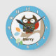 Notre horloge murale super mignonne Owl in Tree Tops peut être personnalisée avec n'importe quel nom. Cet élément peut également être imprimé sans nom —> pour supprimer le nom, cliquez sur le bouton "personnaliser", puis sur "x" à côté du calque avec le texte du nom dessus.