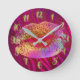 Horloge Ronde Impression de zèbre rose arc-en-ciel lèvres paille