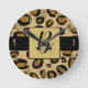 Horloge Ronde Imprimé léopard guépard peint taches or beige brun