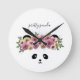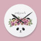 Un ours panda mignon avec des fleurs dans les cheveux sur cette horloge de nurserie. Elle ne se soucie pas de l'heure qu'il est. Il suffit d'ajouter un nom ou de garder le texte Joli Panda