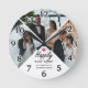 Célébrez l'amour à chaque instant avec cette belle horloge ronde personnalisée. Avec la citation romantique «Happily Ever After» et une icône de cœur rose vif, ce design vous permet d'ajouter les noms du couple et jusqu'à 3 photos chéries dans un magnifique collage. Parfait comme cadeau de mariage, souvenir pour les jeunes mariés ou cadeau significatif pour les anniversaires. Cette pièce décorative intemporelle est un moyen sincère de chérir votre histoire d'amour et de revivre vos souvenirs préférés chaque fois que vous vérifiez l'heure.