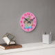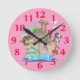 Horloge murale en arche de Noah avec un arrière - plan rose. Grand cadeau de baby shower pour la mère d'une jeune fille. délicieux doodles.