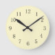 Very pale Pastel Yellow color, lowpriced wall clock for your kitchen adds a subtle touch of color to any wall on which it's in your kitchen, sewing, dorm , or recreation room, or even your living room. A quality clock at a cheap price !
