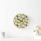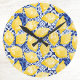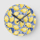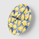 Horloge Ronde Lemon Citrus Mediterranean Blue White Tile Pattern