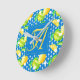 Ajoutez les initiales du prénom de la mariée et du marié (minuscules) et l'initiale de leur nom de famille commun (majuscule) pour créer un cadeau de monogramme élégant pour les jeunes mariés. Le motif ici est un superbe design d'arbre de citron jaune et vert sur un beau fond à motifs bleu océan et blanc.