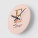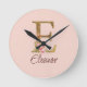 Horloge Ronde Lettre de nom personnalisée E Roses roses blush fe