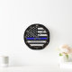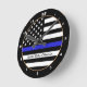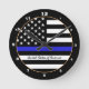 Horloge Ronde Ligne Bleue Mince & Police américaine du Drapeau /