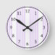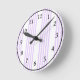 Horloge Ronde Lilac violet et blanc cinq bandes motif