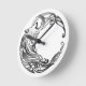 Design tribal avec un loup dans une lune de croissant aux tons noir, gris et blanc.