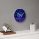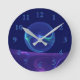 Horloge Ronde Lumineuse Bleu Violet Rêve Abstrait Fractal Art