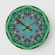 Horloge Ronde Mandala Vert Bleu