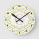 Horloge Ronde Modern yellow, grey, ivory chevron pattern custom