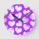 Horloge Ronde Moderne violet blanc Doodled Heart Valentine's Day