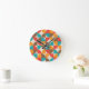 C'est élégant milieu du siècle moderne demi-cercles abstraits motif en orange, rouge, turquoise et marron. C'est super horloge à la recherche pour tous ceux qui aiment les dessins géométriques rétro