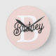 Horloge Ronde Monogramme et nom personnalisé moderne Pastel Pink