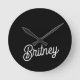 Horloge Ronde Monogramme et nom personnalisés en noir moderne