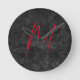 Horloge Ronde monogramme gris unique nom rouge calligraphie init
